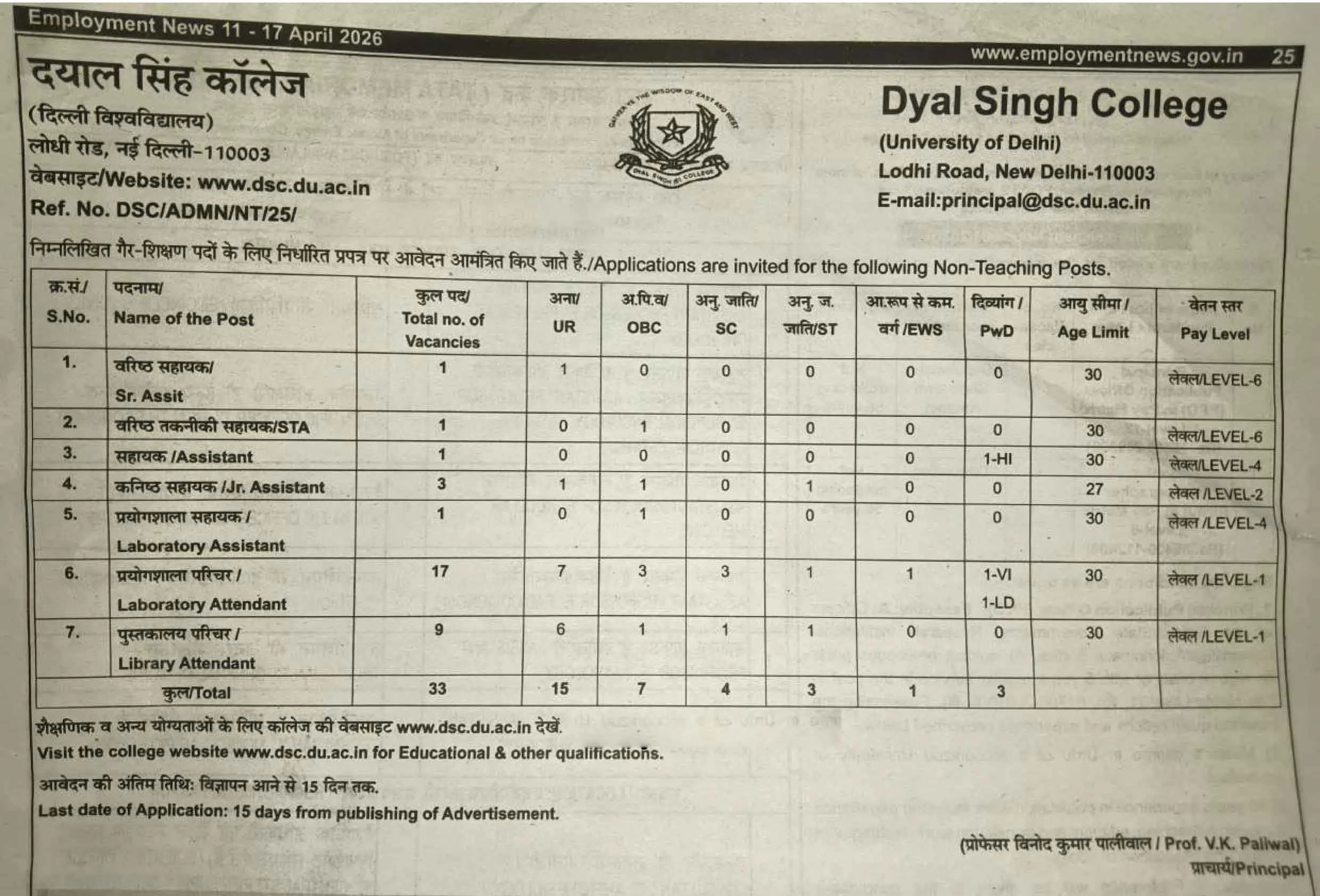 DSC DU Recruitment 2026: Delhi University’s Dyal Singh College (DSC) has opened applications for 33 non-teaching vacancies in 2026. Roles include Senior Assistant, Junior Assistant, Laboratory Attendant, Library Attendant, and more. If you’re looking for a stable government job in Delhi with a reputed university, this is a solid opportunity.