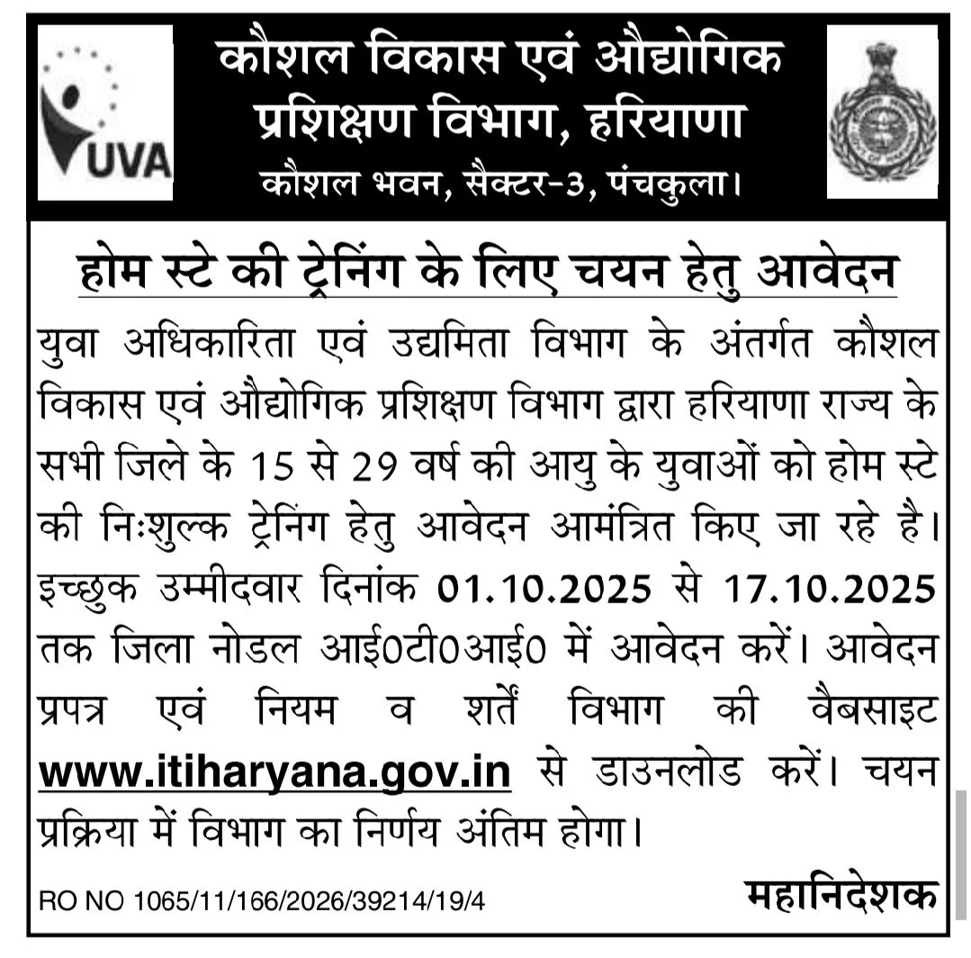 Recruitment Organization Name | Skill Development & Industrial Training Department, Haryana |