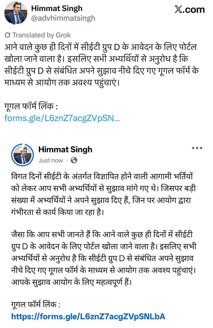 | HSSC CET Group-D Update By Chairman | Video Link |