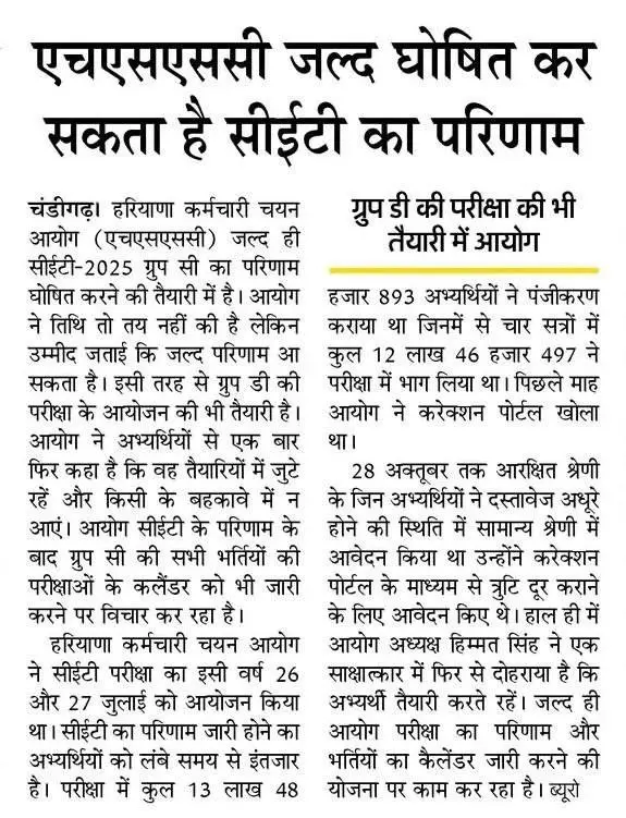 | HSSC CET Exam Result 2025 (Soon) | Result Download |