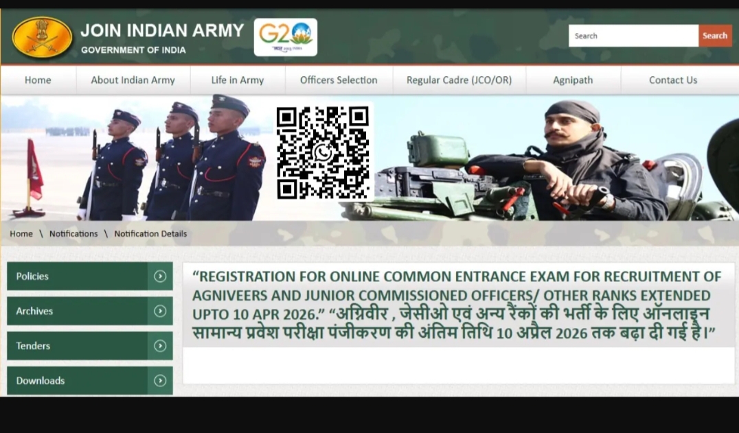Indian Army Agniveer Recruitment 2026: The Indian Army is expected to release the Army Agneepath Scheme 2026 notification soon for the recruitment of Agniveers across various posts. Eligible and interested candidates will be able to apply online through the official website joinindianarmy.nic.in once the application process begins. The online application is likely to start in 2026, and detailed information regarding eligibility, age limit, selection process, and important dates will be provided in the official notification. Additionally, the Indian Army will continue to conduct a Typing Test for Agniveer Clerk posts under the Agneepath Scheme 2026. Candidates are advised to stay connected for the latest updates and prepare in advance for the upcoming recruitment.