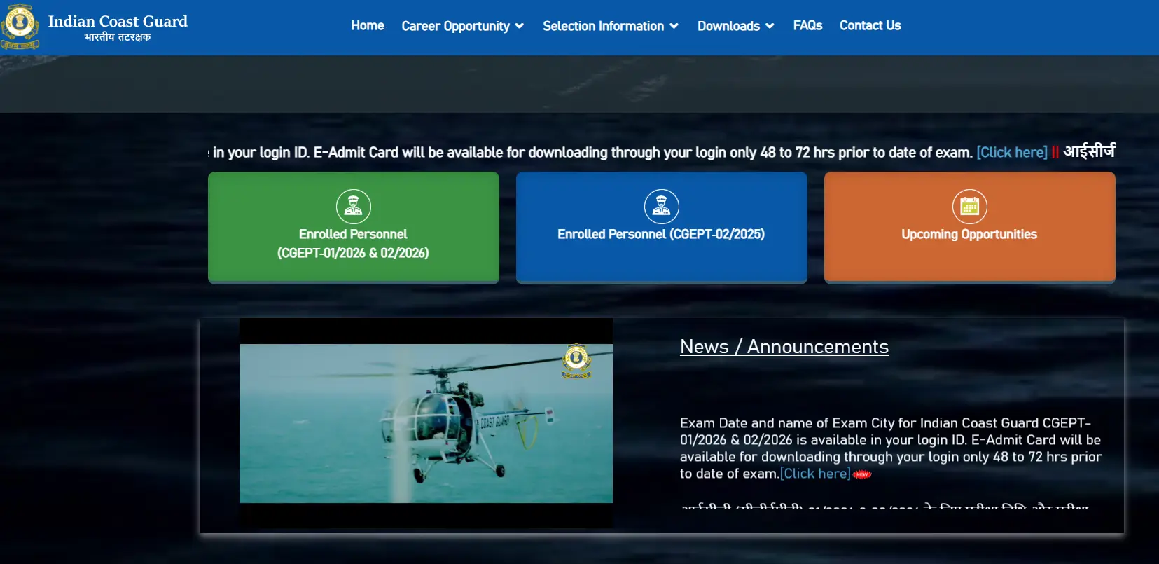 | ICG CGEPT 01/2026 & 02/2026 Exam City Intimation Link | Exam City |