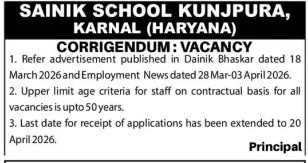 | Sainik School Kunjpura Recruitment 2026 Official Notification | Click Here |