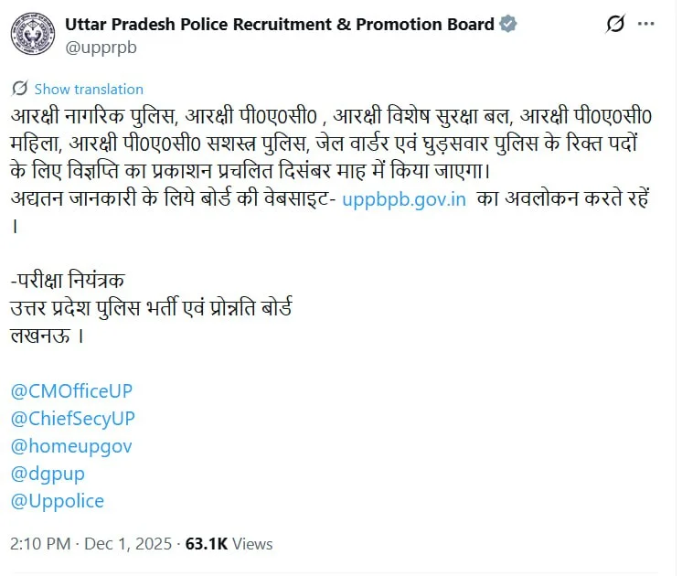 | UP Police Constable Recruitment 2025 Short Notice | Notice |